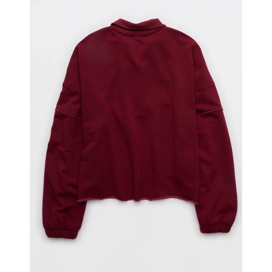 OFFLINE By Aerie OTT Seamed Quarter Zip Sweatshirt – Deep Cherry