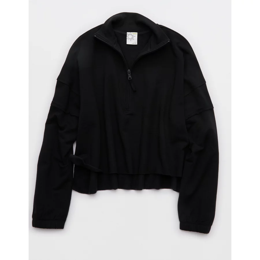 OFFLINE By Aerie OTT Seamed Quarter Zip Sweatshirt – True Black