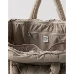 THE LOOK: Lightweight puffy fabric that feels like a cloud (AKA bag of our dreams). Adjustable strap with logo & a band to slide onto a suitcase (here you come travel days)!
