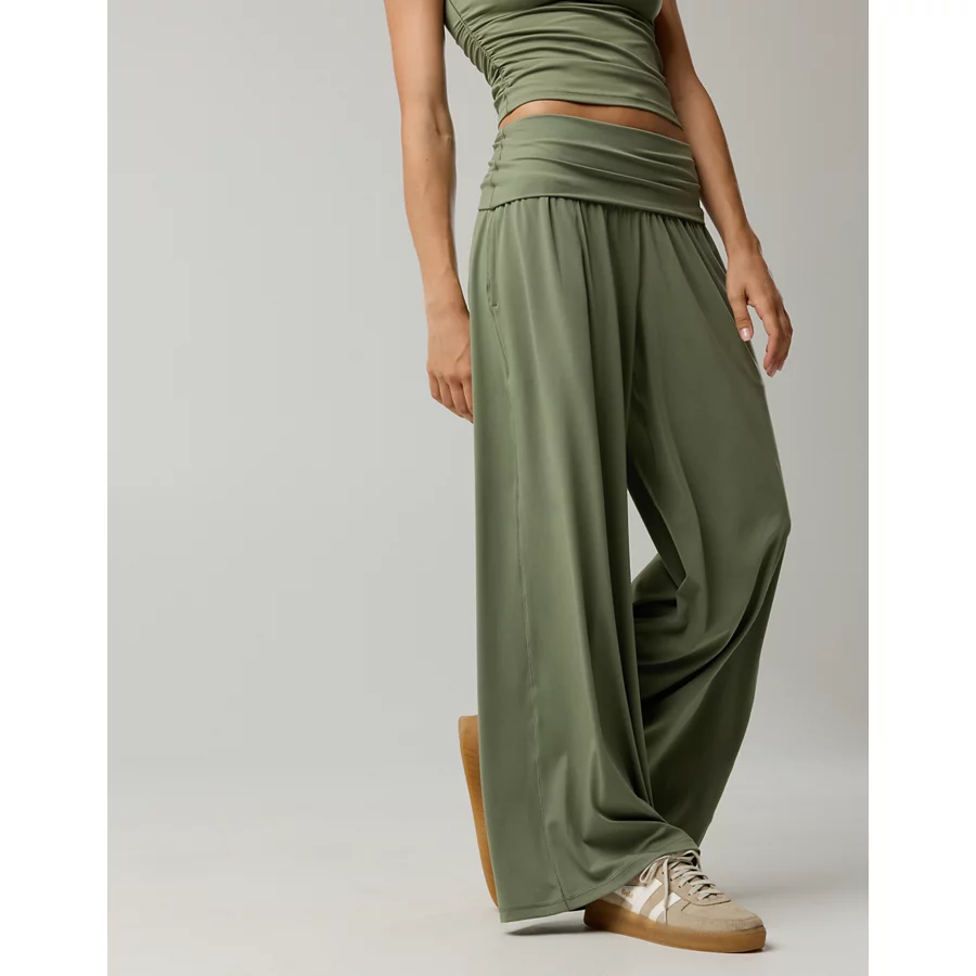 OFFLINE By Aerie Real Me Foldover Super Wide Leg Pant – Olive Fun