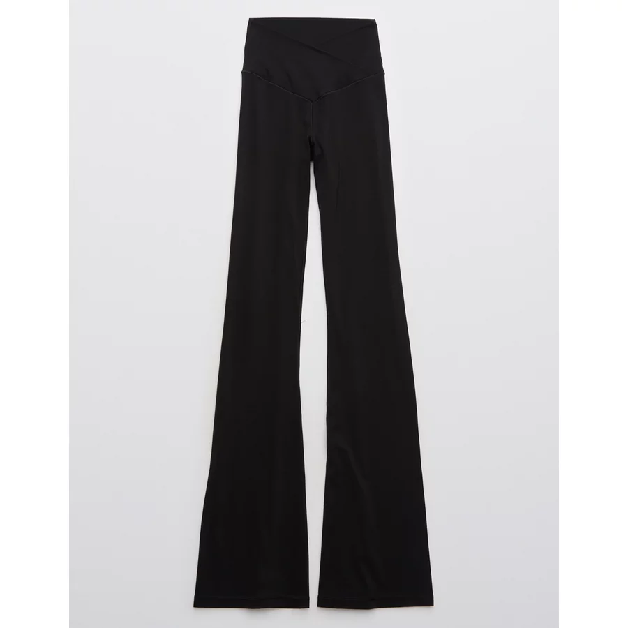 OFFLINE By Aerie Real Me High Waisted Crossover Flare Legging – True Black