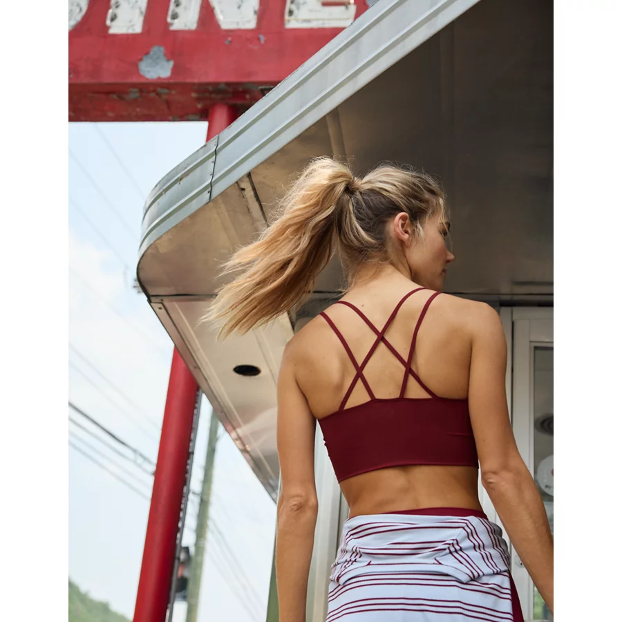 OFFLINE By Aerie Real Me Hold Up! Strappy Sports Bra – Deep Cherry