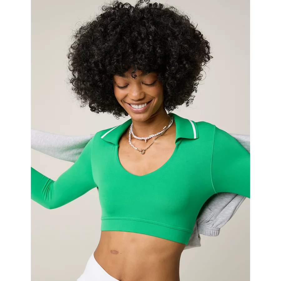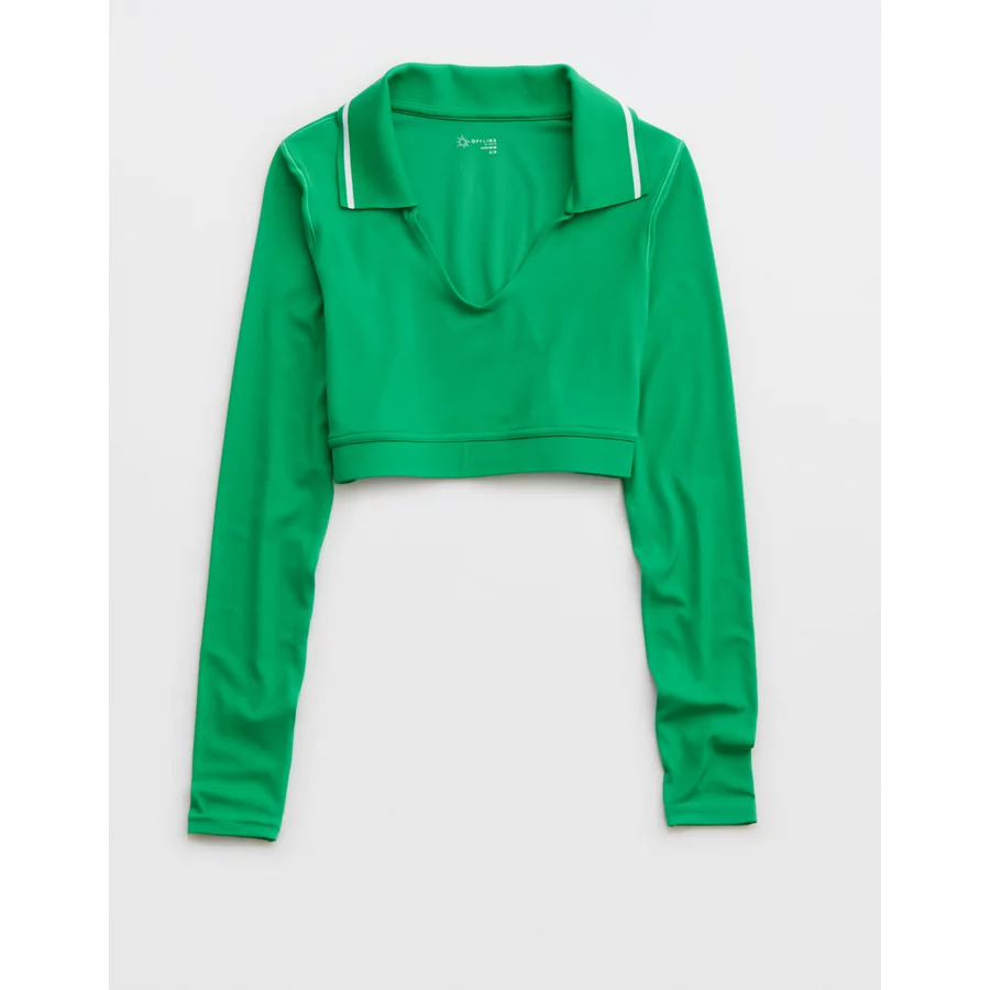 OFFLINE By Aerie Real Me Long Sleeve Polo T-Shirt – Green Mission