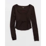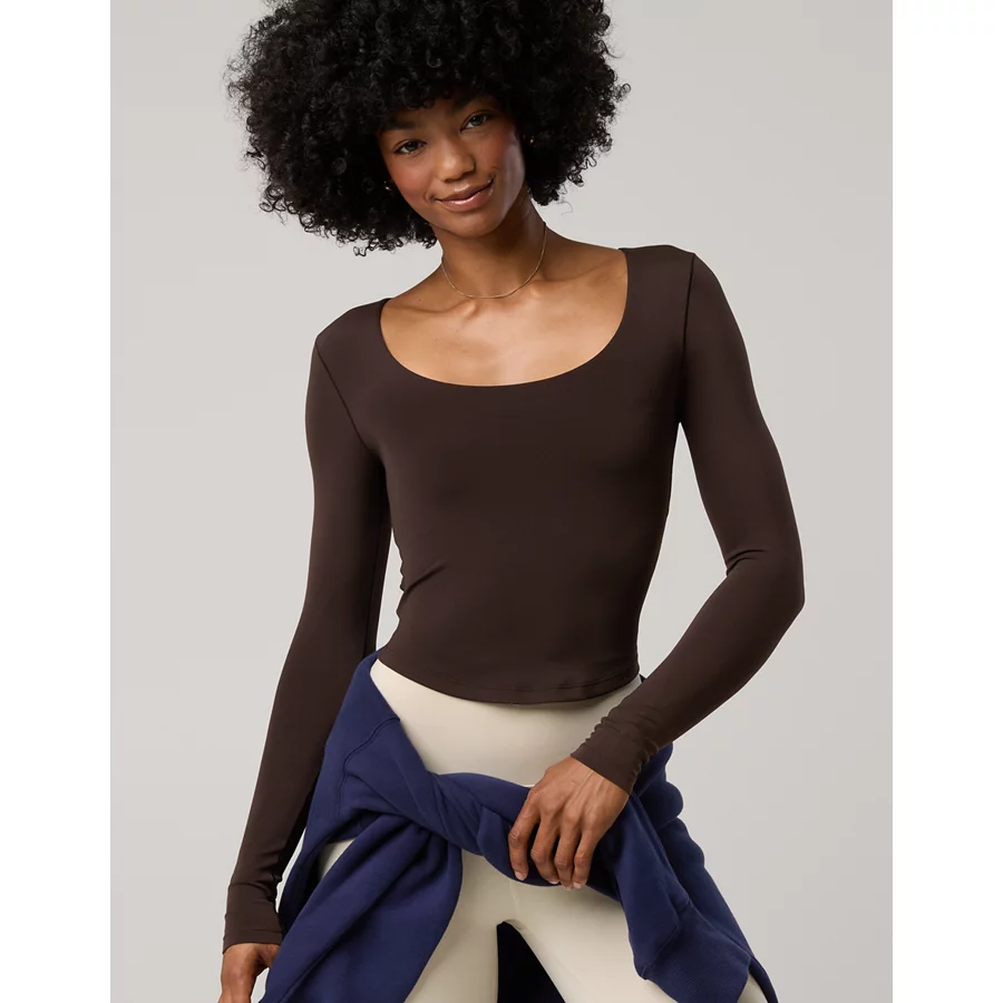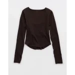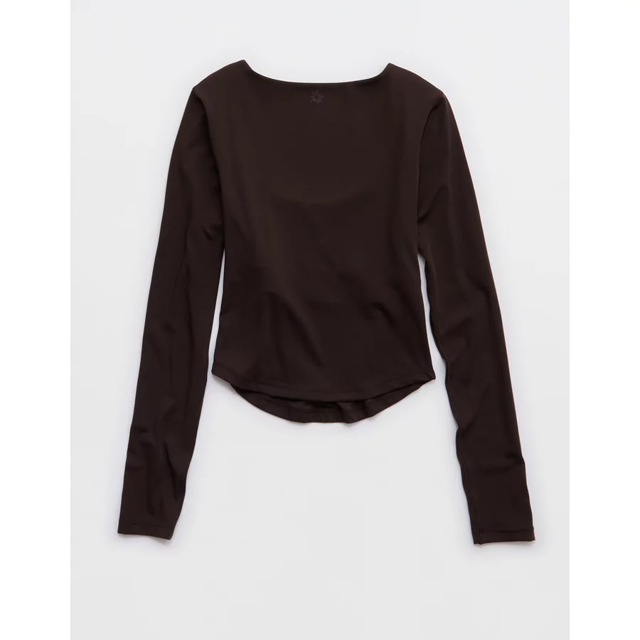 OFFLINE By Aerie Real Me Long Sleeve Scoop T-Shirt – Deep Earth