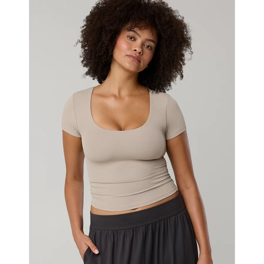 OFFLINE By Aerie Real Me Scoop T-Shirt – Stone Harbor