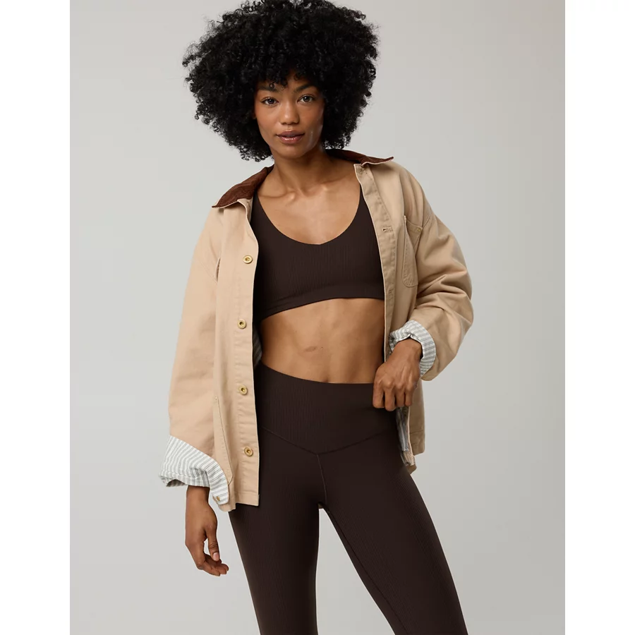 OFFLINE By Aerie Real Me XTRA Rib Switch Up V-Neck Sports Bra – Deep Earth