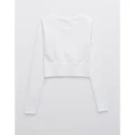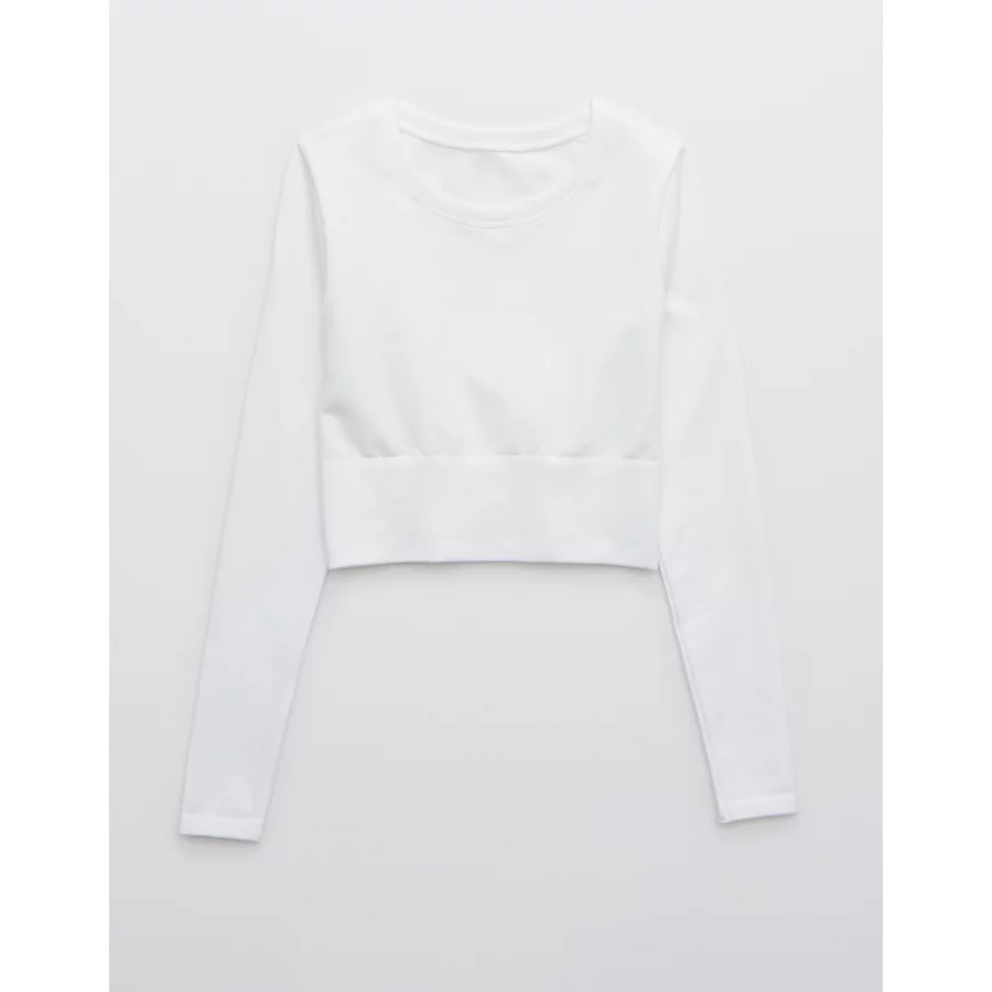 OFFLINE By Aerie Sidewalk Seamless Long Sleeve Cropped T-Shirt – White