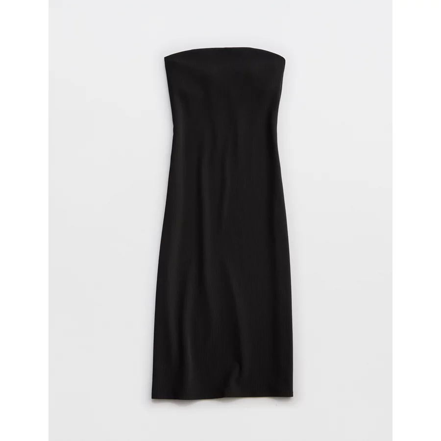 OFFLINE By Aerie Stripe Rib Night Out Midi Tube Dress – True Black