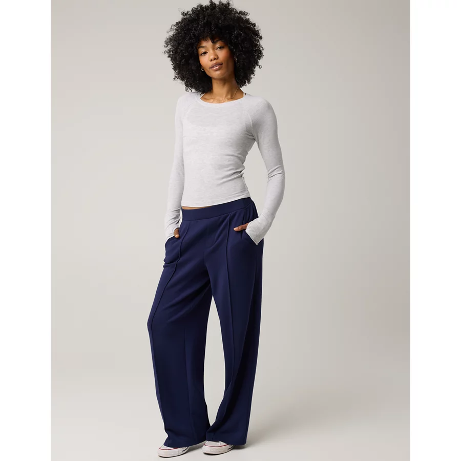 Real Good Everyday yarnRolled necklineRibbed trim on cuffs and hemPointelle deets and split cuffs on the sleevesThis style is heathered