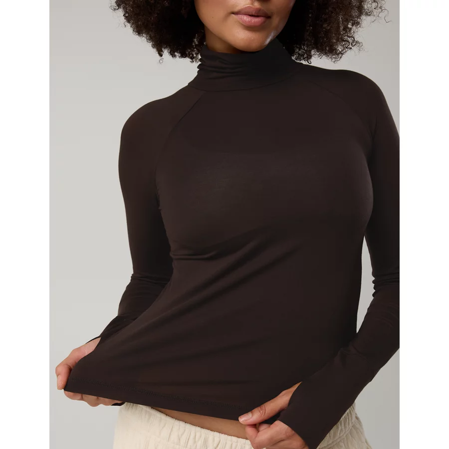 OFFLINE By Aerie Thumbs Up Long Sleeve Turtleneck Shirt – Deep Earth