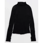 OFFLINE By Aerie Thumbs Up Long Sleeve Turtleneck Shirt – True Black