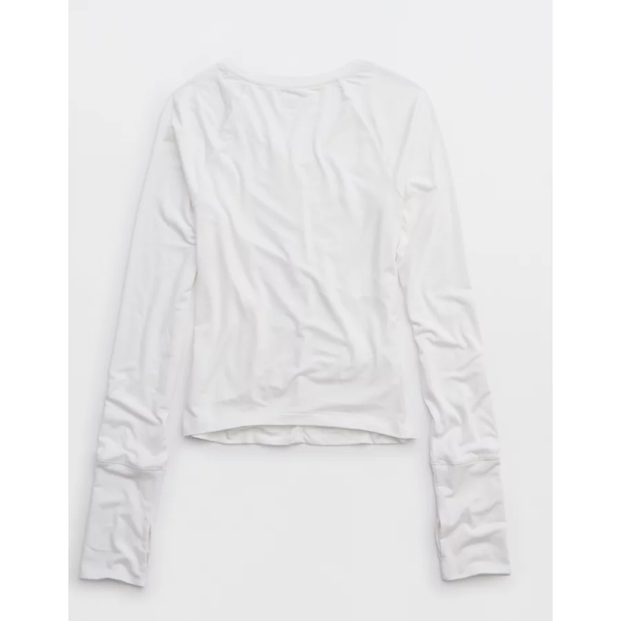 OFFLINE By Aerie Thumbs Up Ruched Long Sleeve T-Shirt – White