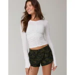 OFFLINE By Aerie Thumbs Up Ruched Long Sleeve T-Shirt - Military Green