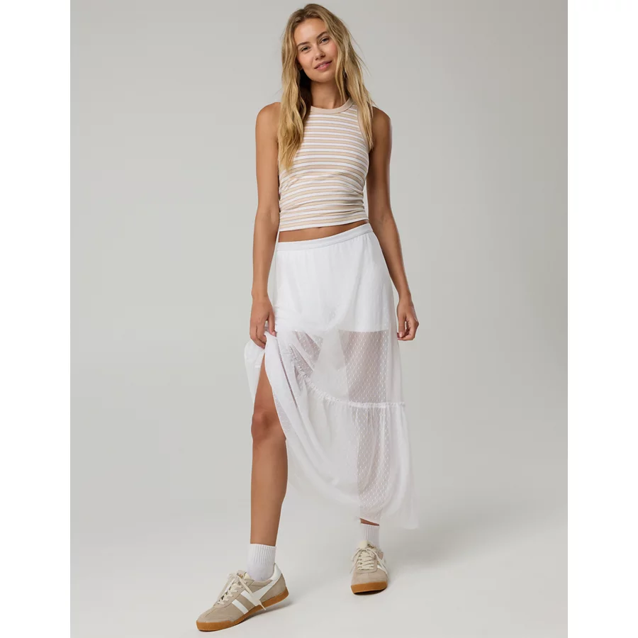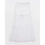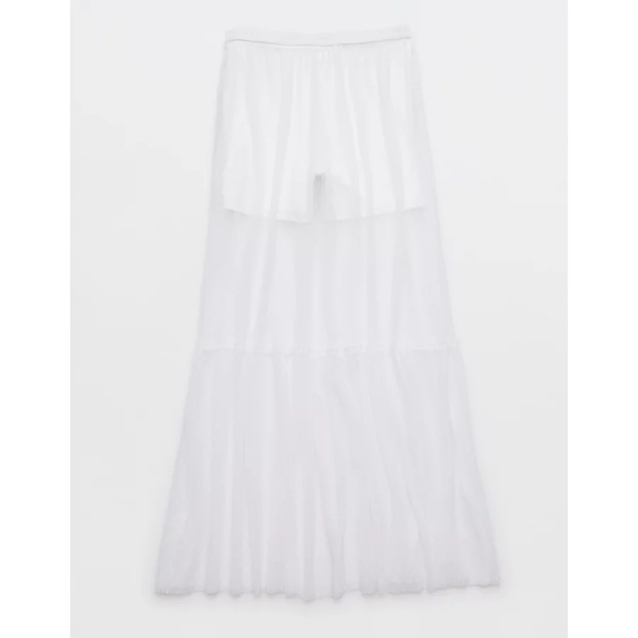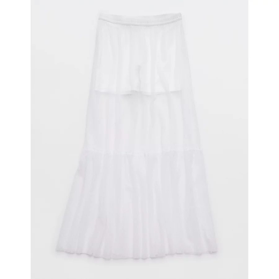 OFFLINE By Aerie Tiered Dot Mesh Maxi Skirt – White