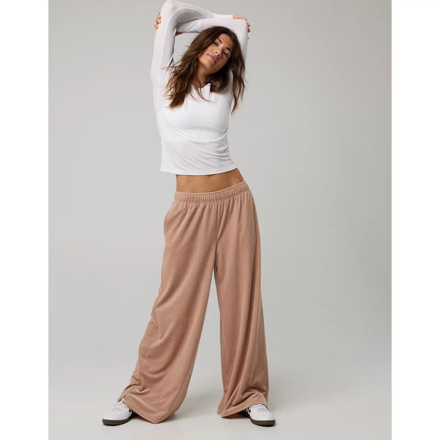 OFFLINE By Aerie Velour Rib Super Wide Leg Pant – Beach Dune