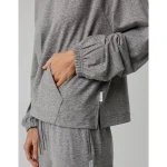 THE LOOK: Hoodie silhouette with puddle sleeves. Lightweight & slouchy. Front pocket.