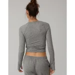 Aerie Bambi Real Soft® Piping Pajama Shirt – Smoked Gray