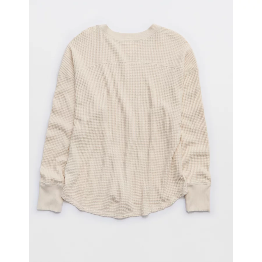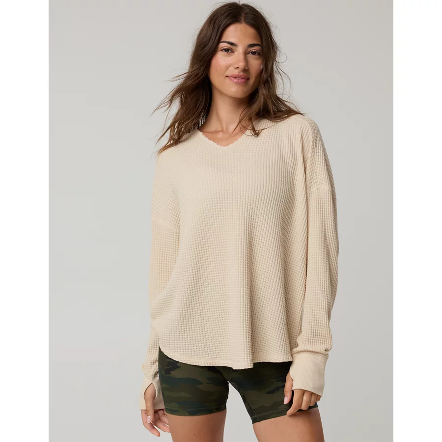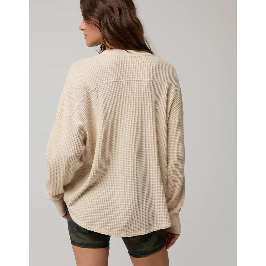 OFFLINE By Aerie Wow! Waffle Notch Neck Long Sleeve T-Shirt – Cake Batter