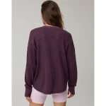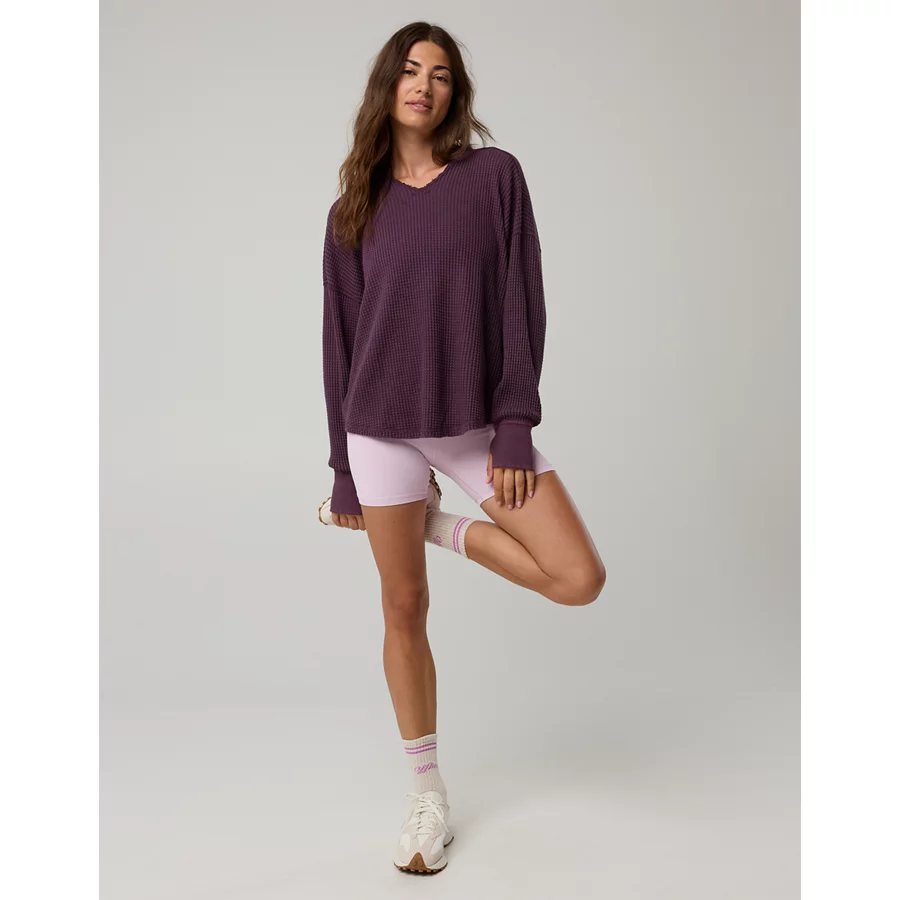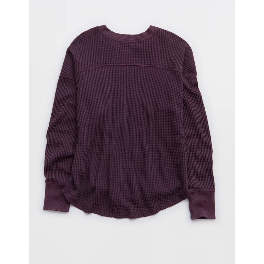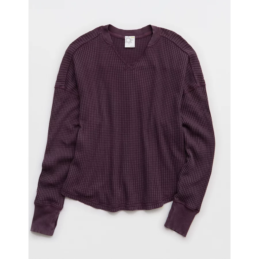 OFFLINE By Aerie Wow! Waffle Notch Neck Long Sleeve T-Shirt – Cool Berry