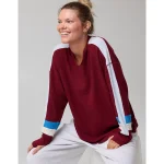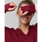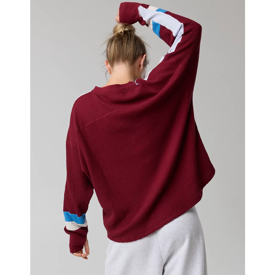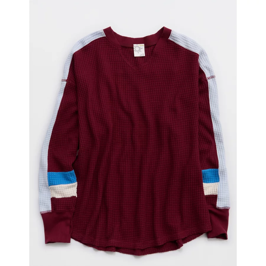 OFFLINE By Aerie Wow! Waffle Notch Neck Long Sleeve T-Shirt – Deep Cherry