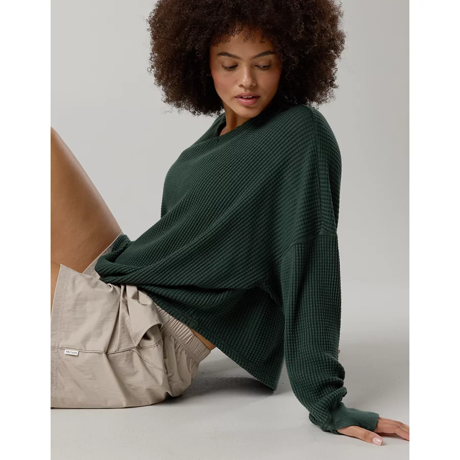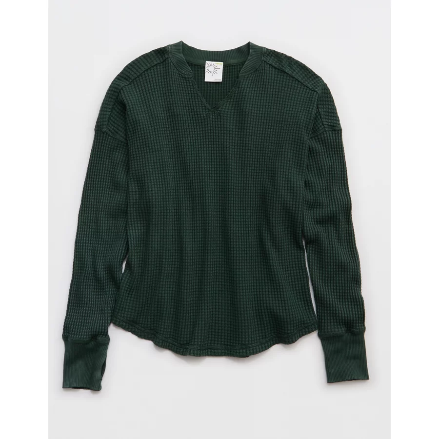 OFFLINE By Aerie Wow! Waffle Notch Neck Long Sleeve T-Shirt – Mystical Green