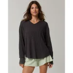 OFFLINE By Aerie Wow! Waffle Notch Neck Long Sleeve T-Shirt – Smoked Gray