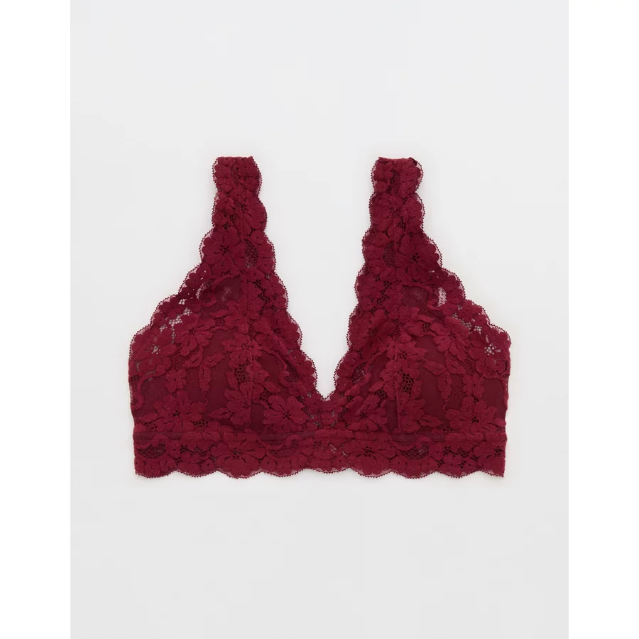 Show Off Chenille Lace Padded Plunge Bralette – Deep Cherry