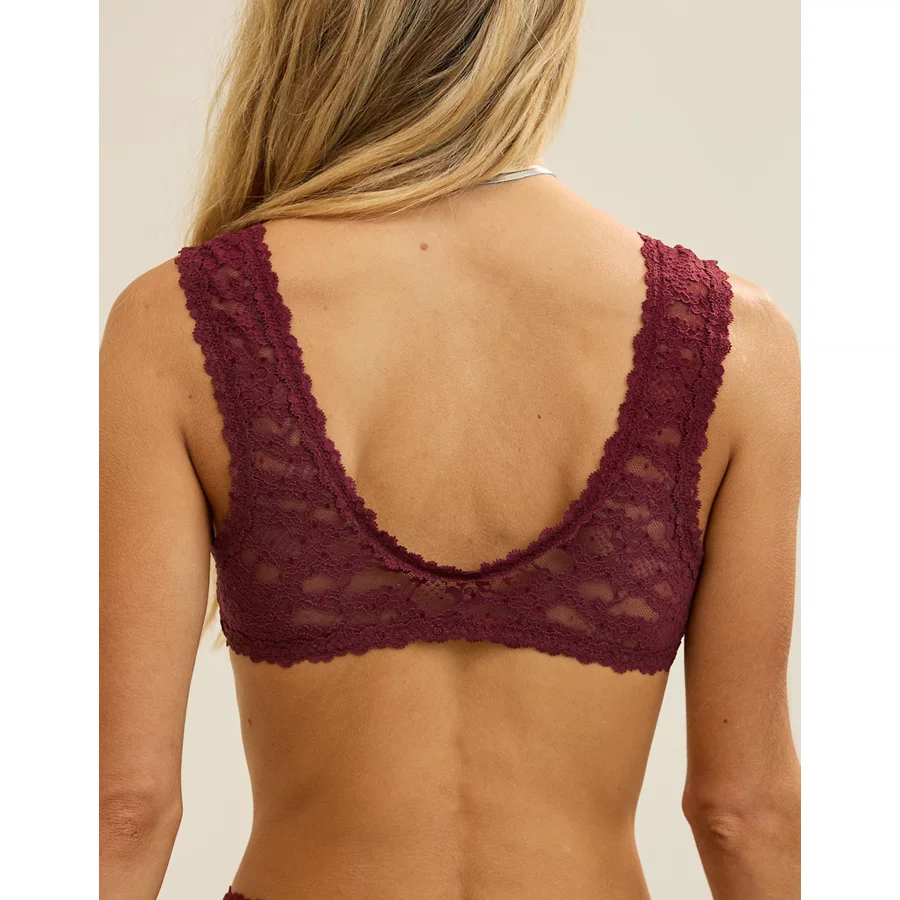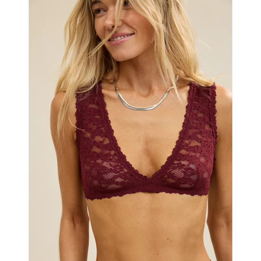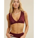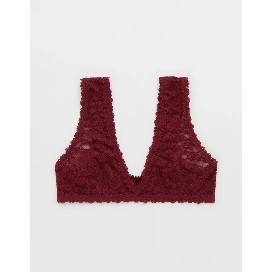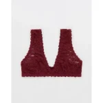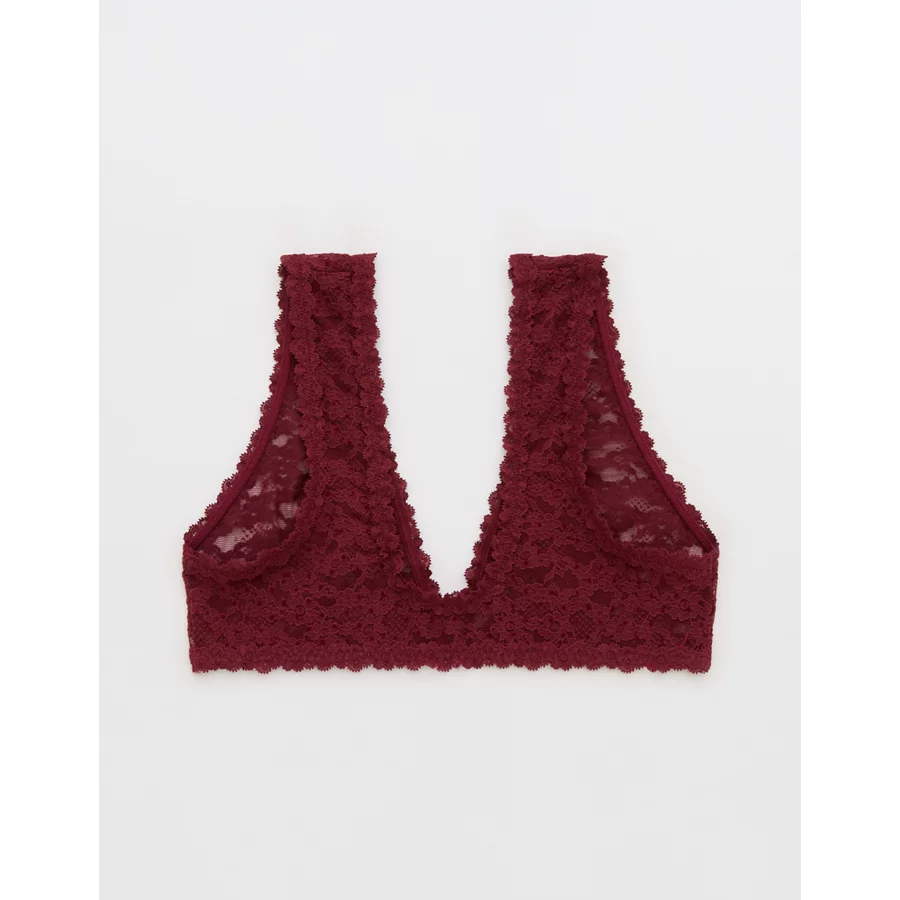 Show Off Flocked Vintage Lace Plunge Bralette – Deep Cherry