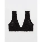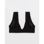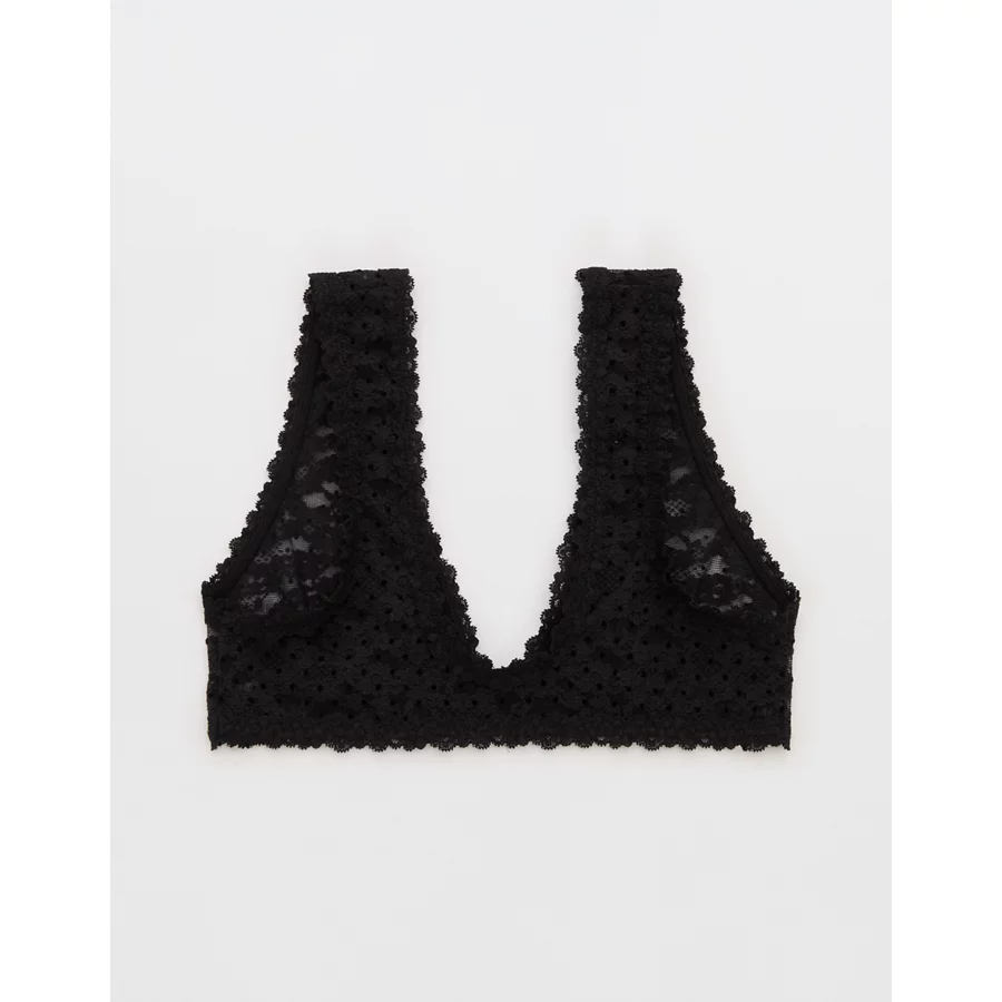 Show Off Flocked Vintage Lace Plunge Bralette – True Black
