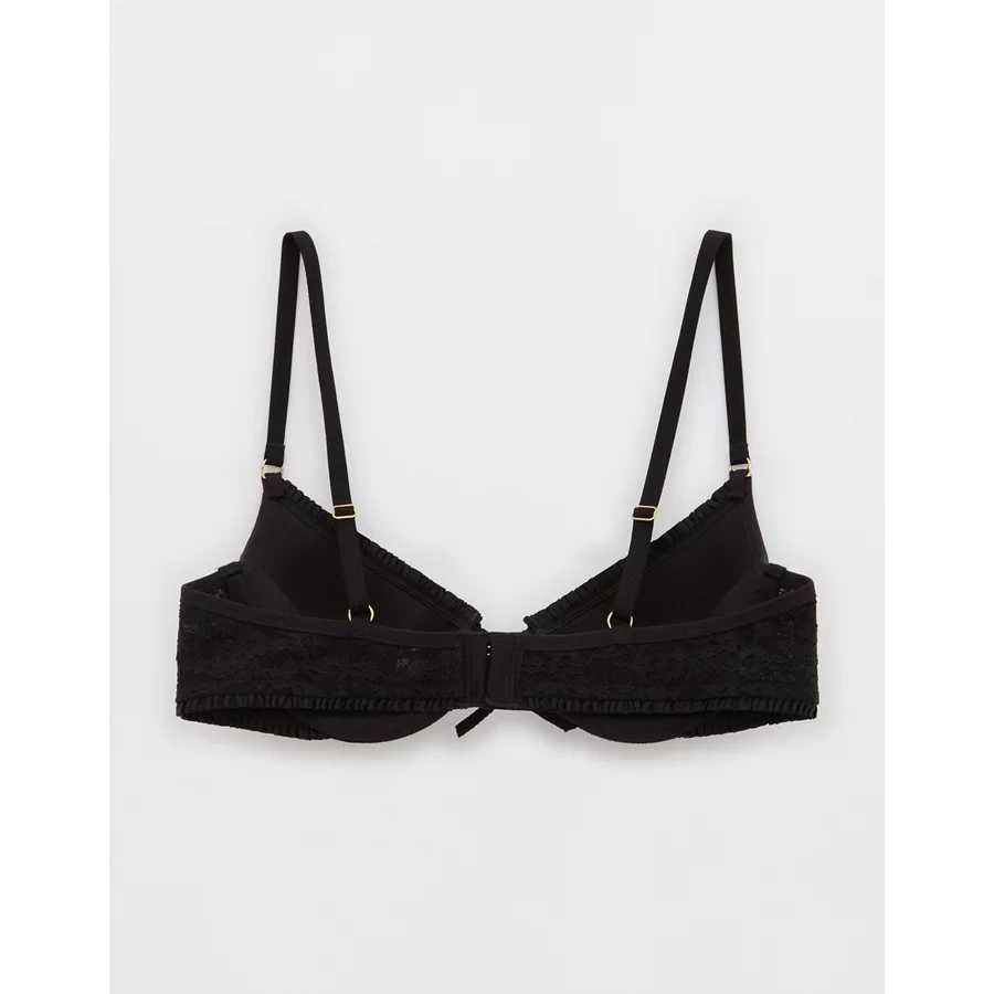 Show Off Vintage Lace Plunge Push Up Bra – True Black