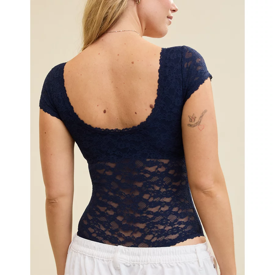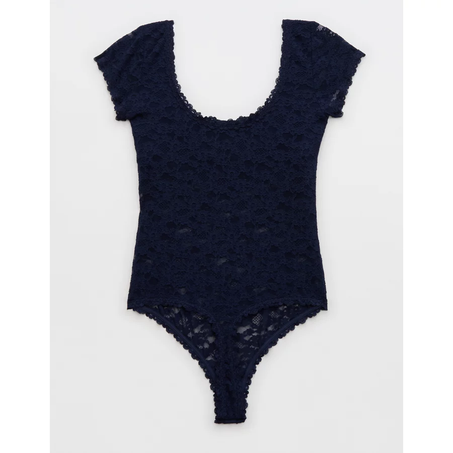 Show Off Vintage Lace Short Sleeve Bodysuit – Navy