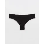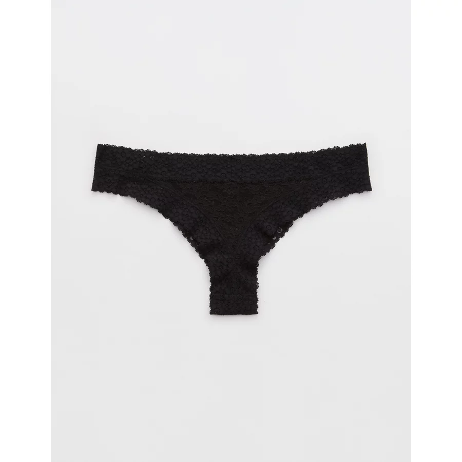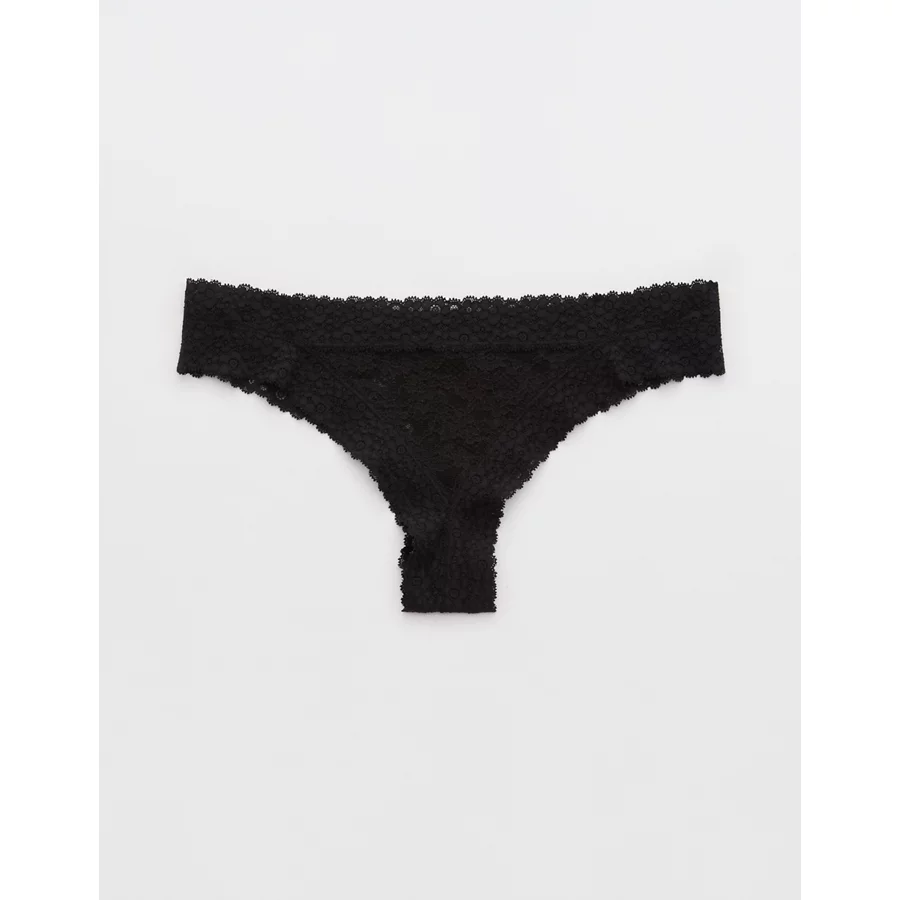 Show Off Vintage Lace Trim Thong Underwear – True Black