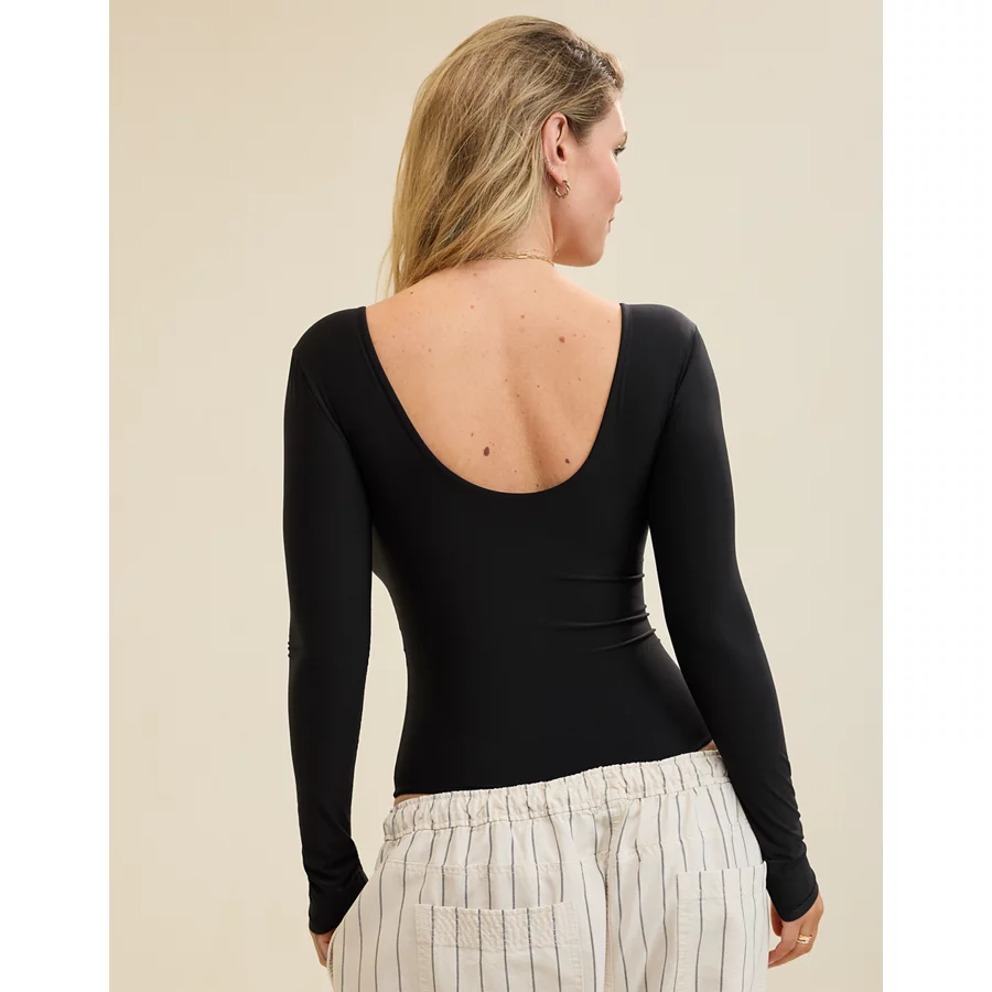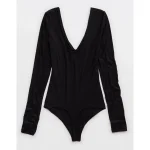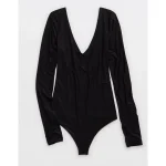 SMOOTHEZ Long Sleeve Plunge Bodysuit – True Black