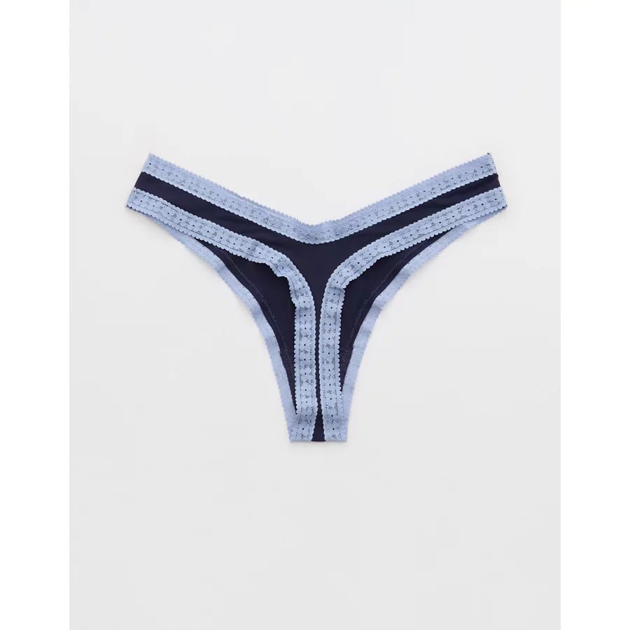 SMOOTHEZ Microfiber Lace Thong Underwear – Monaco Blue