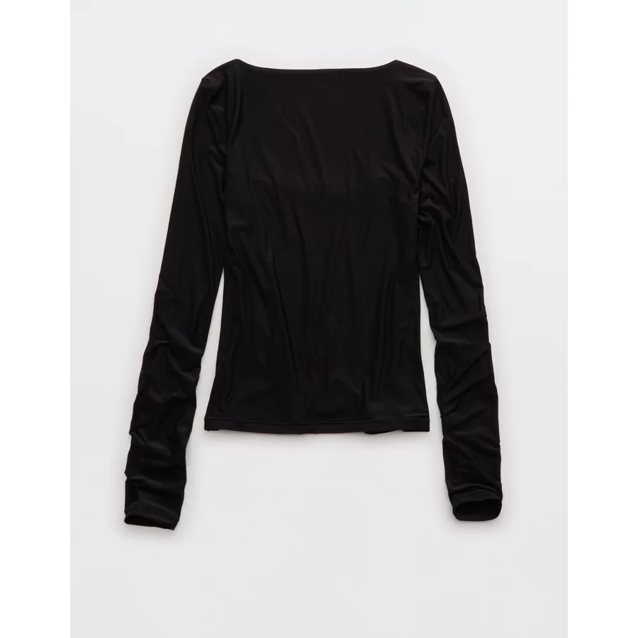 SMOOTHEZ Square Neck Long Sleeve T-Shirt – True Black
