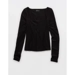 Aerie Bambi Real Soft® Piping Pajama Shirt – Smoked Gray