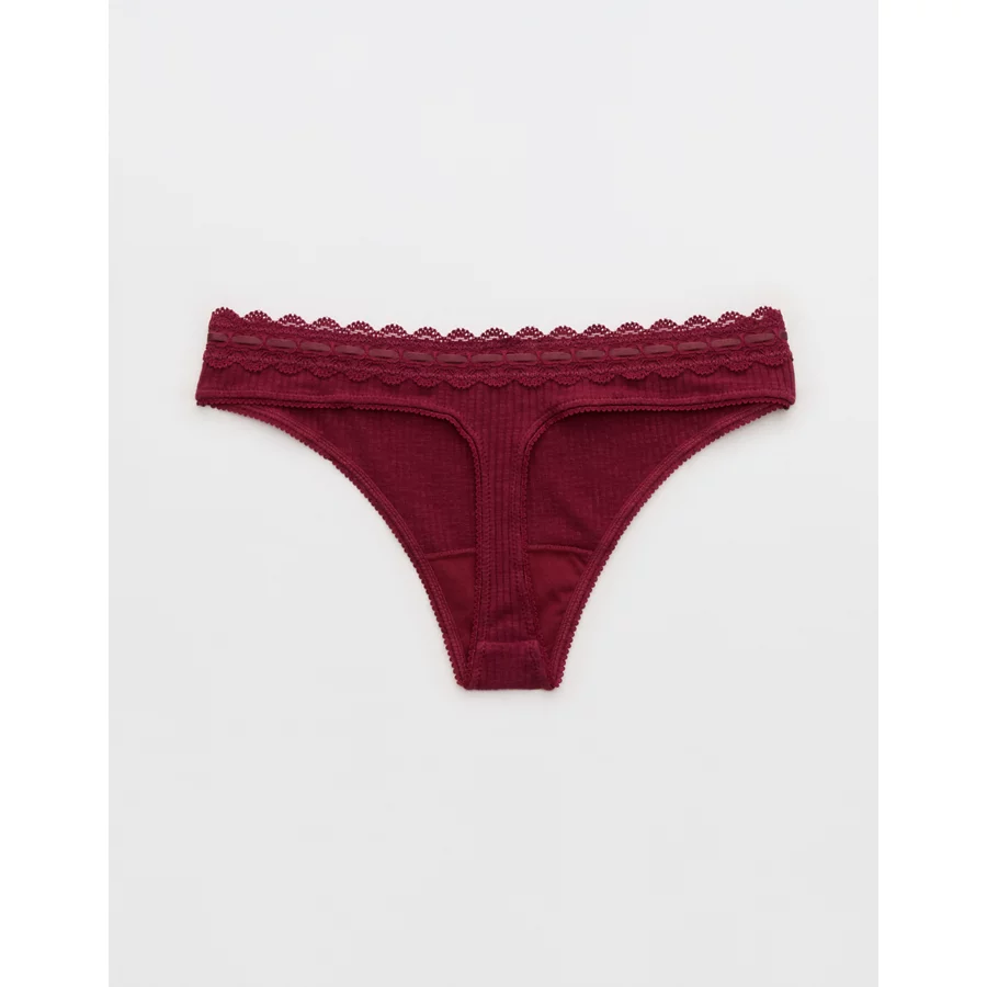 Superchill Cotton Rib Lace Thong Underwear – Deep Cherry