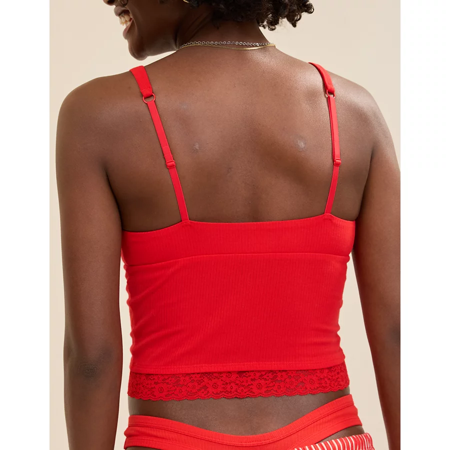 Superchill Cotton Rib Vintage Lace Tank Top – Bright Red