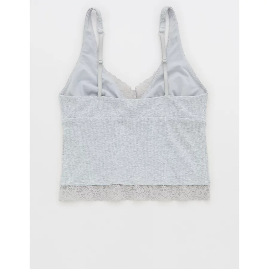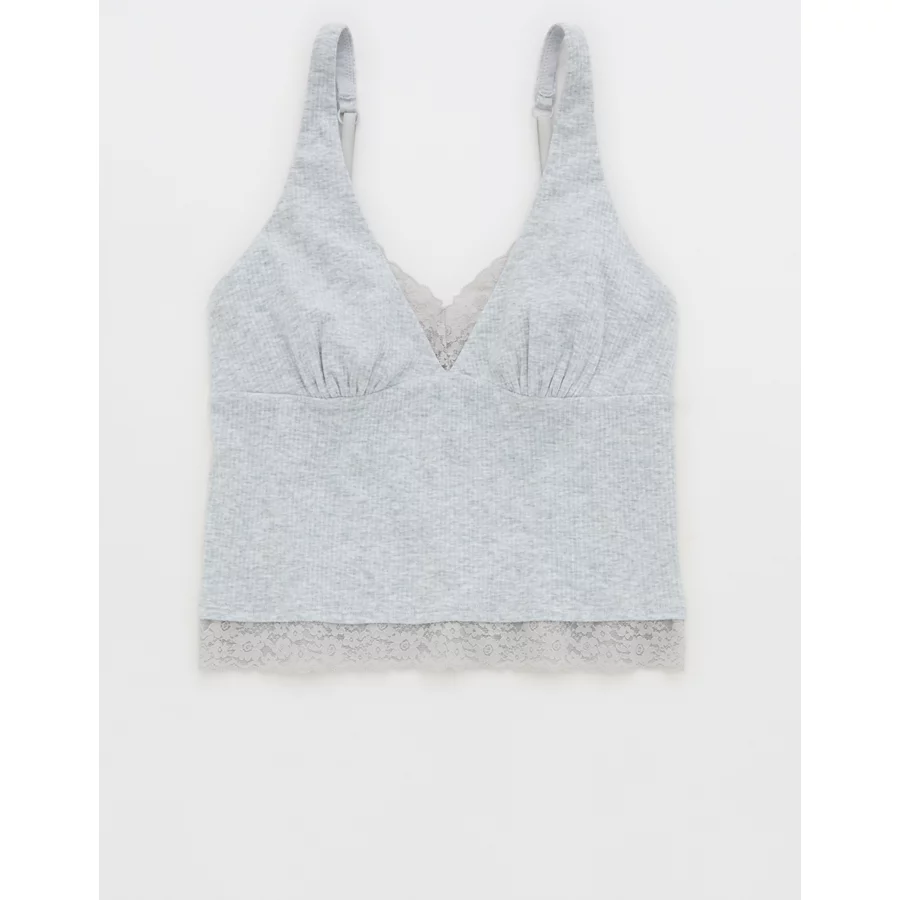 Superchill Cotton Rib Vintage Lace Tank Top – Medium Heather Gray