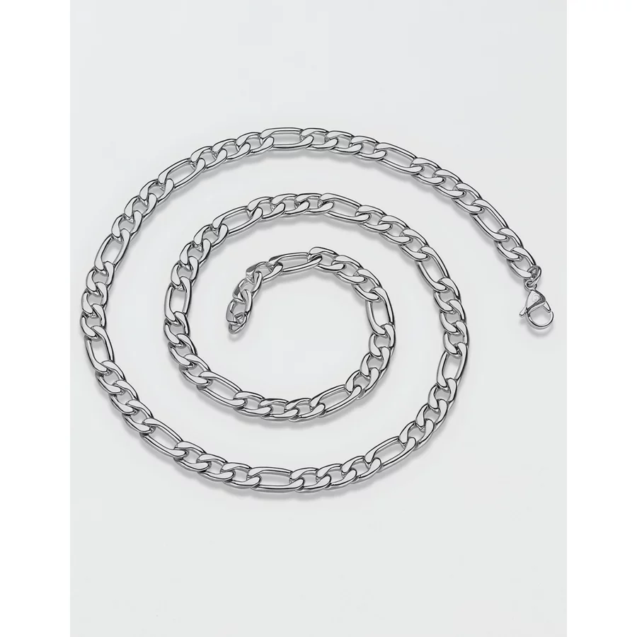 West Coast Jewelry Polished Stainless Steel Figaro Chain Necklace – Silver